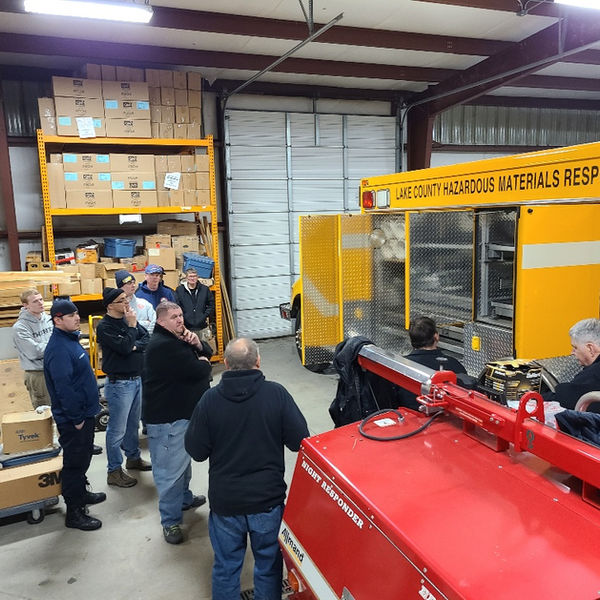Our Hazardous Materials Team is comprised of volunteers from various Fire Departments through out Lake County, IN. The team is on call 24/7; 365 days per year. Not only does the team protect the county but at times also provide mutual aide to assist adjoining counties.